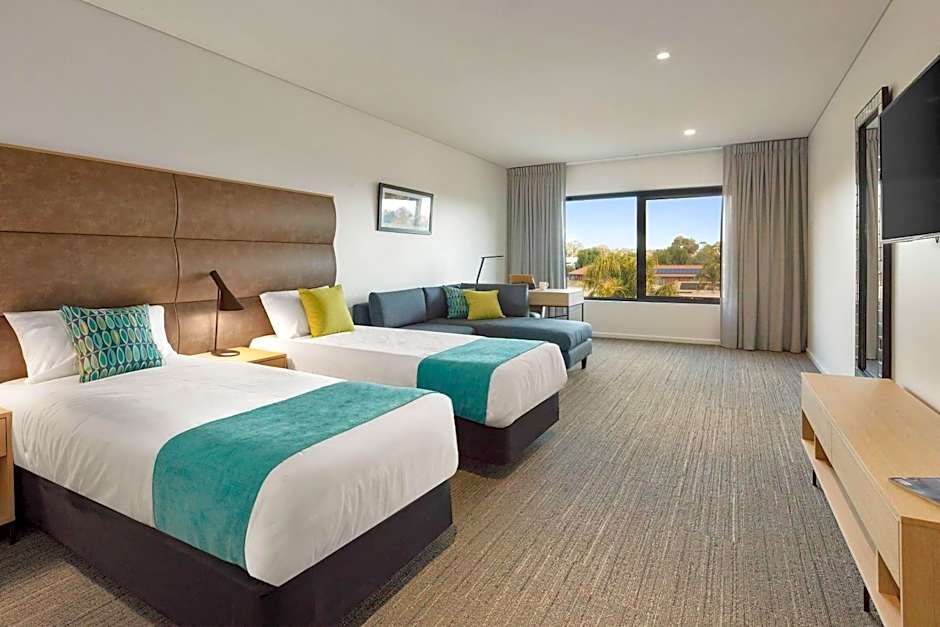 These Executive King rooms are located on the 1st and 2nd floors of the more modern building at the property and offer luxury king beds, free WiFi, a large bathroom as well as modern furnishings and a well-stocked mini bar. The large feature windows have a generous view of either of Lake Weeroona, courtyard and pool or views over Bendigo.